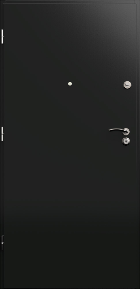 Drzwi typu panelowego mają skrzydło o konstrukcji wielowarstwowej ze stalowym korpusem skrzynkowym i wymiennymi z obu stron okładzinami.
