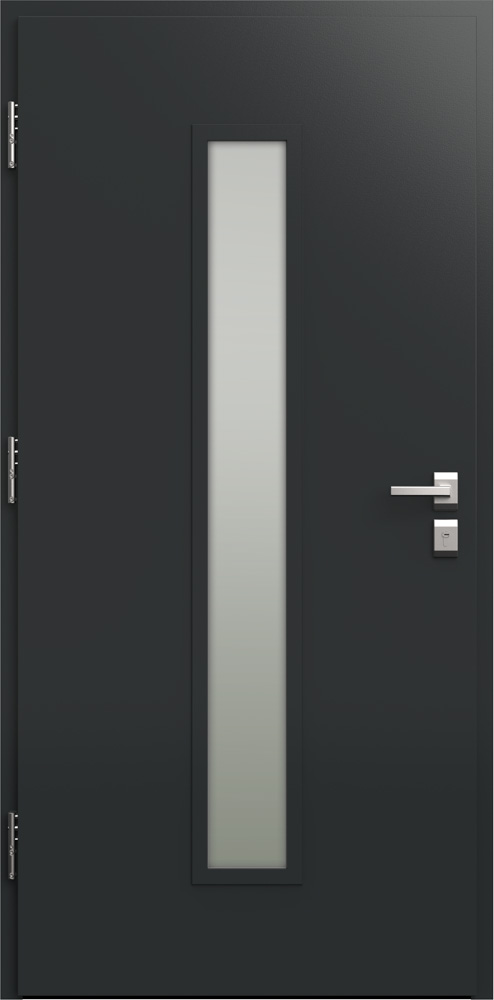QUADRO to drzwi wejściowe zewnętrzne antywłamaniowe z z licznymi przeszkleniami oraz listwą 3D.